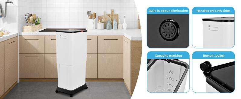 - Isolate Odors :tall slim plastic garbage can kitchen lidded garbage container lock unpleasant smells inside, keeping your home's air fresh. There is a box on the cover of trash can where you can put fragrance in it