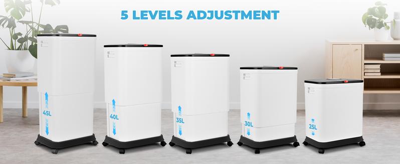 - No Bending Over : this Commercial Trash Cans kitchen garbage can can be adjusted in height from 16.9 inches to 28.4 inches, allowing you to avoid bending over when throwing garbage