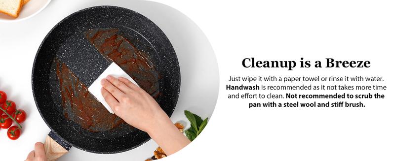 - Easy to Clean: Simplify your kitchen routine with our nonstick cooking set, designed for easy cleaning and maintenance. Simply wipe with a paper towel or rinse with water to reduce time and water waste.