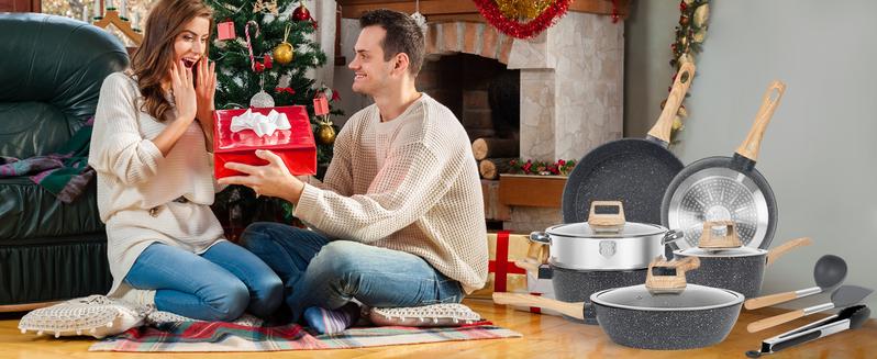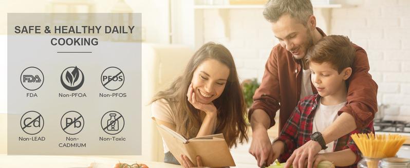 Non-toxic and PFOS & PFOA-free,SGS Approved Cookware Sets Allow You to Cook Healthy and Safe.