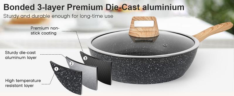 This nonstick grantie coating helps to reduce the amount of oil or butter needed for cooking, resulting in healthier meals.