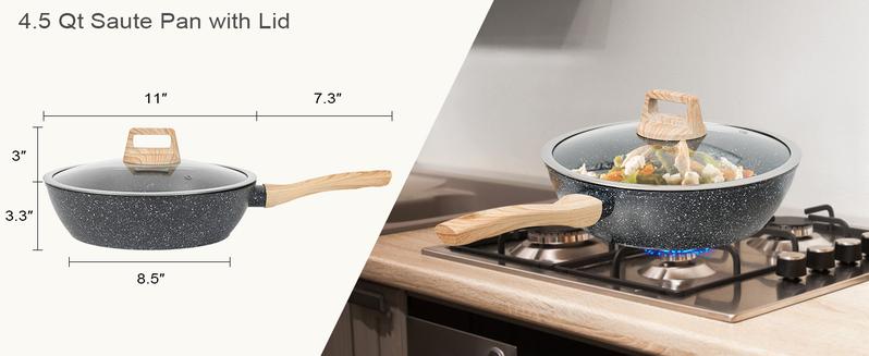 - Superior Granite Quality: Feature premium granite coating ensures long-lasting durability and exceptional non-stick properties, making cooking a breeze. Non-toxic and PFOS & PFOA-free,SGS Approved cookware sets allow you to cook healthy and safe.