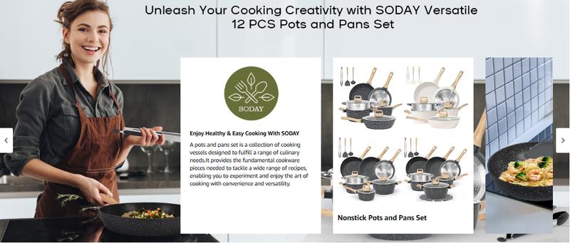 Non-Stick Bliss, Culinary Success- Elevate Your Kitchen Experience Today with SODAY Pots and Pans Non Stick!